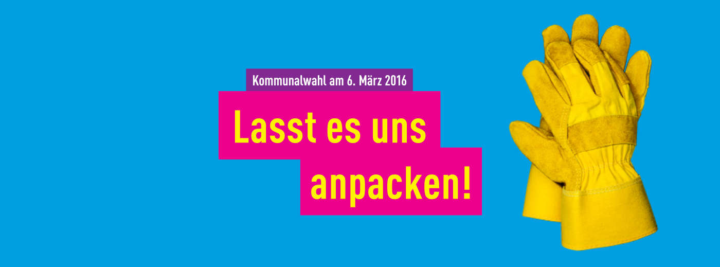 Die Rahmenkampagne für die Kommunalwahl erlaubt und erfordert konkrete, lokale Umsetzungen. Neben den Plakatmotiven etc. kann der Handschuh in vielfältigster Form eingesetzt werden. Fotografieren Sie etwa den Handschuh an einem Problempunkt vor Ort mit dem Kampagnenslogan und einer lokalen Forderung. Diese Motive können Sie sowohl für Social Media als auch für Ihre Broschüren bzw. Ihre PR-Arbeit nutzen.